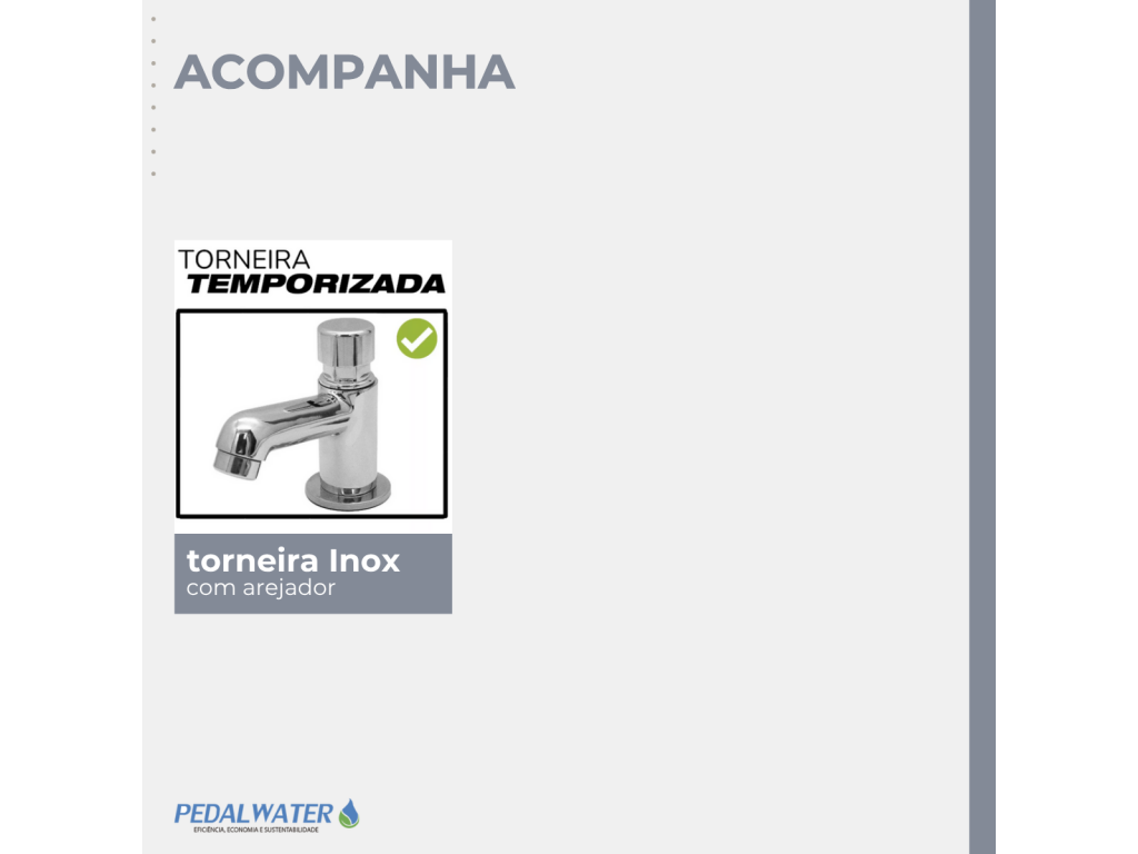 Acessórios incluídos: Torneira com arejador, Válvula americana 3.1/2, Sifão, Flexíveis.